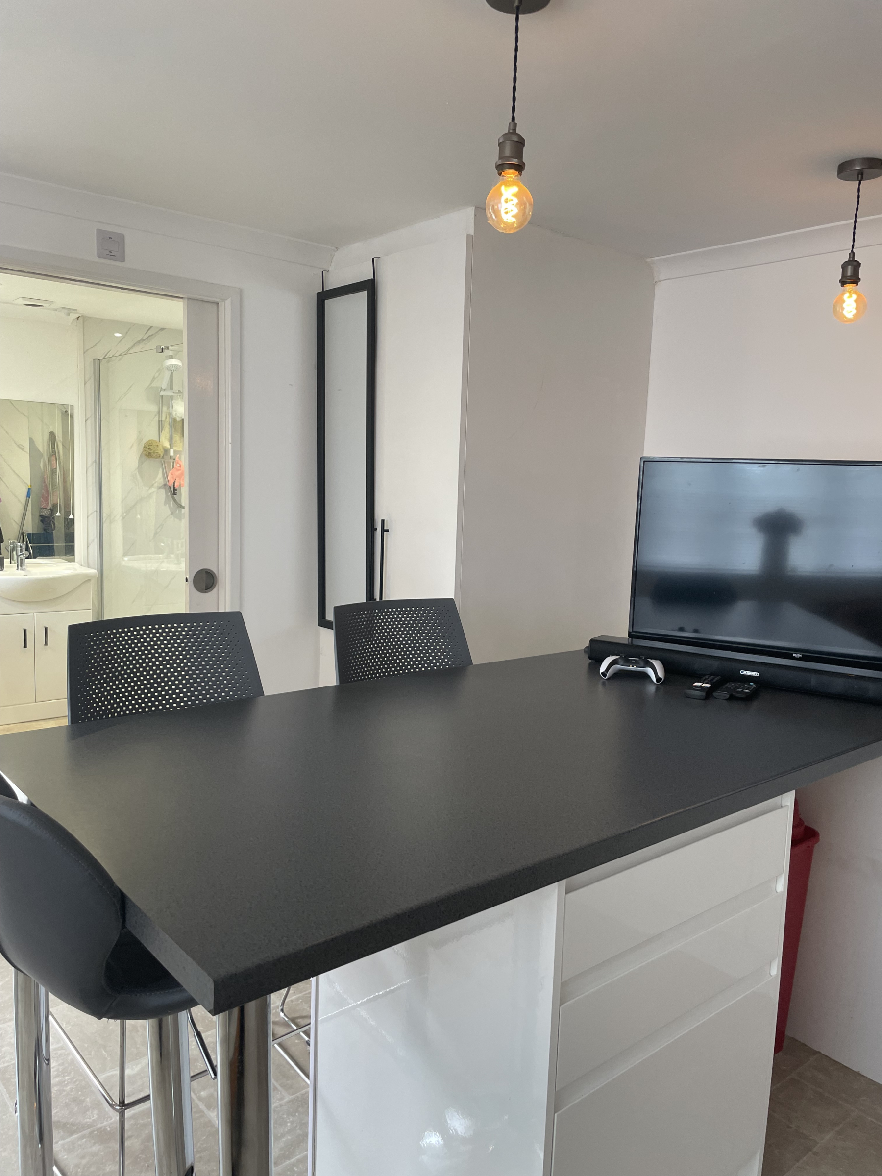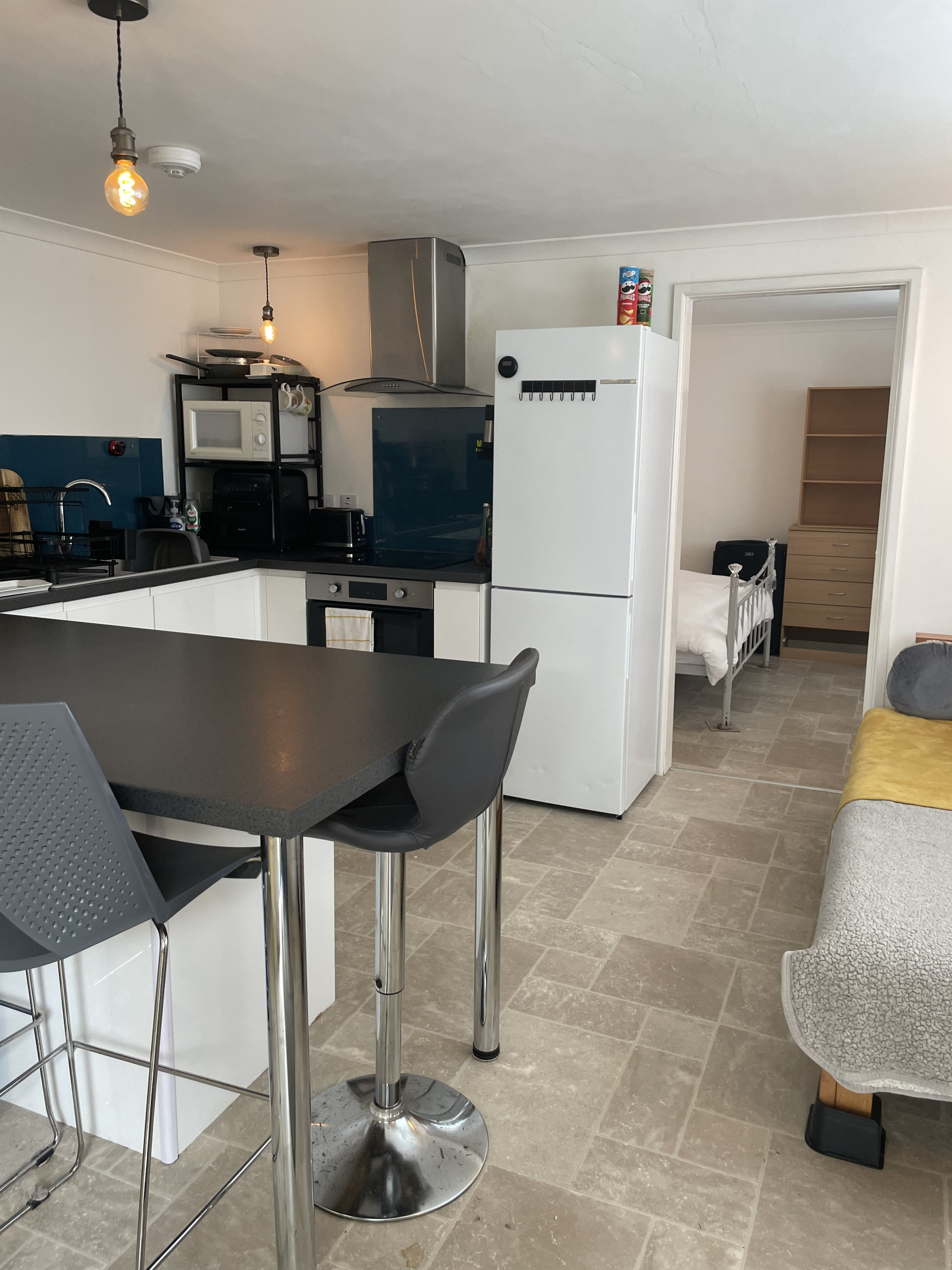 One Double Bedroom Unfurnished Studio. Entrance into the Living Area with Kitchen and Breakfast Bar. Fitted Electric Oven/Hob with Extractor Fan. Space for washing machine. Shower Room with Heated Towel Rail. Dimplex Heating. Ariston Water Heater. Parking. EPC Rating TBC. Water Utility included in the rent.